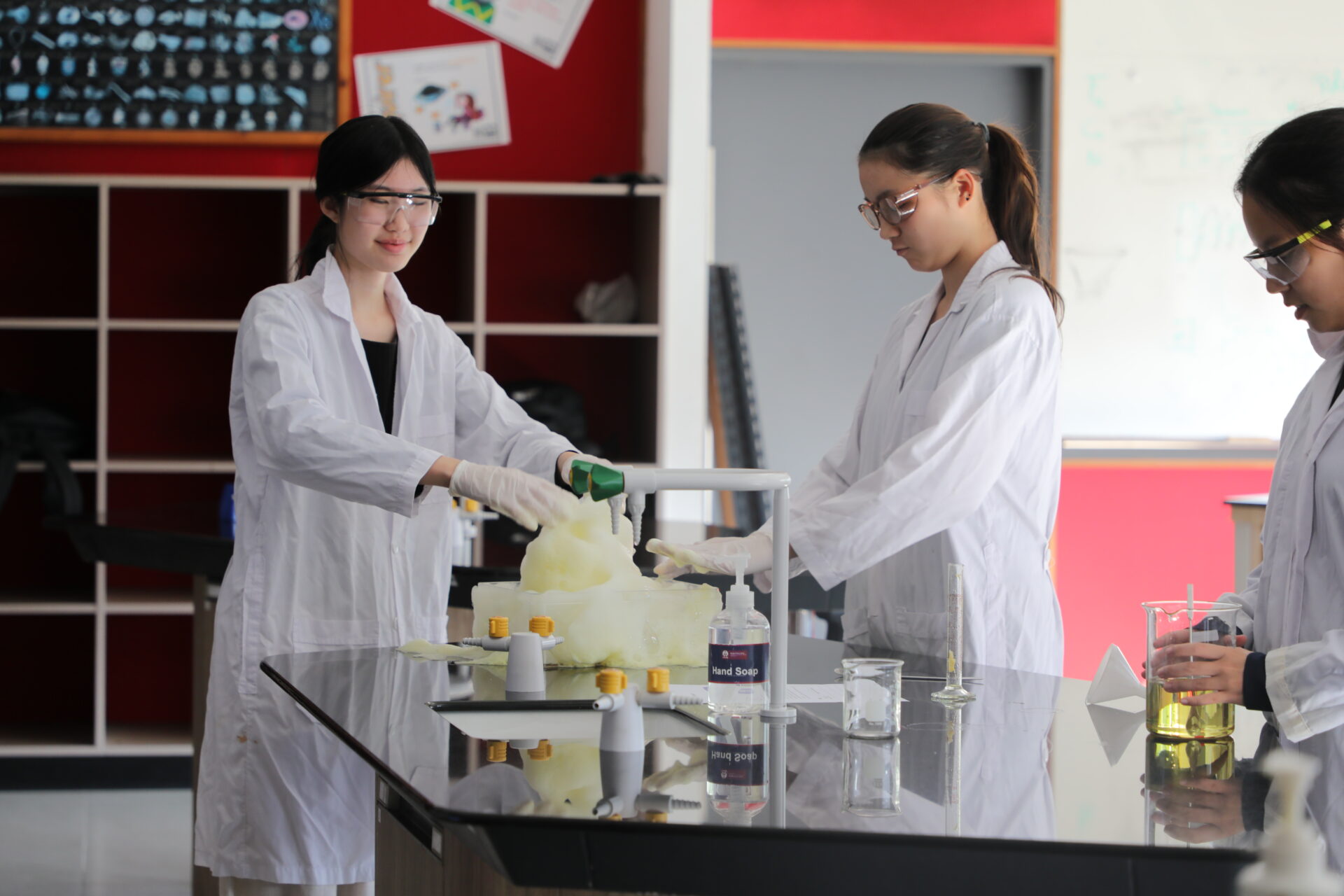 • Food coloring (green, blue, red)