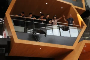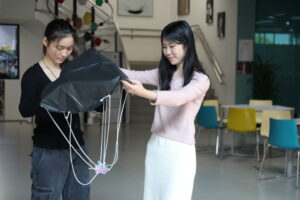 Finally, when everyone had completed their parachute designs, we gathered on the second floor to test them. We released each parachute, observing how they descended. To our delight, four out of the five models successfully met the challenge, showcasing the students’ problem-solving skills.